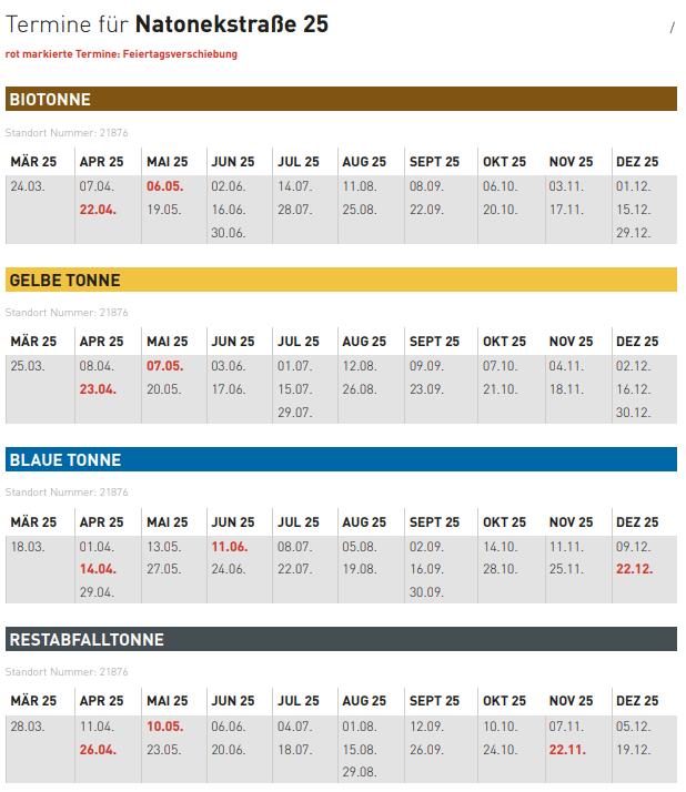 Der Kalender wird bereitgestellt von der Stadtreinigung. Unter dem Button gelangt man direkt zur Website.